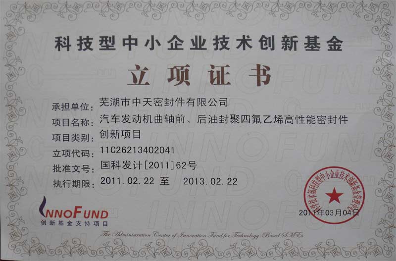 科技型中小企業(yè)技術(shù)創(chuàng)新基金立項證書